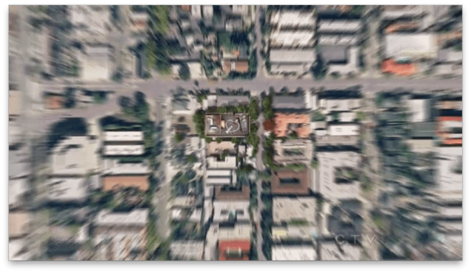整个 downtown 被淹没在飘雪中。
