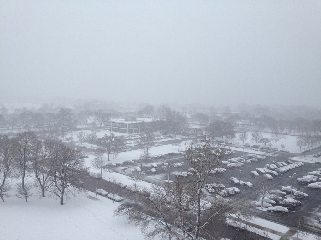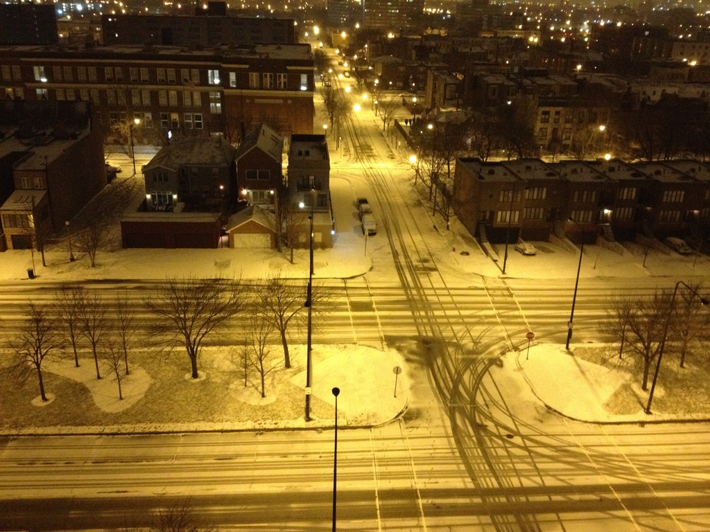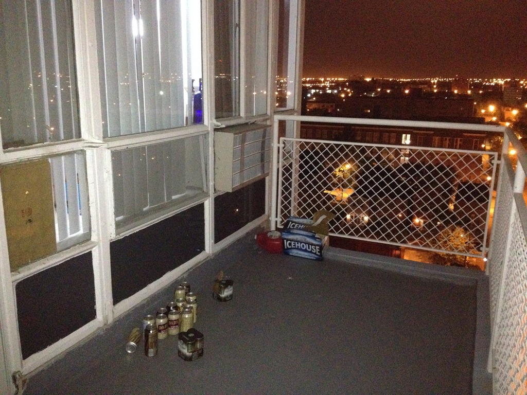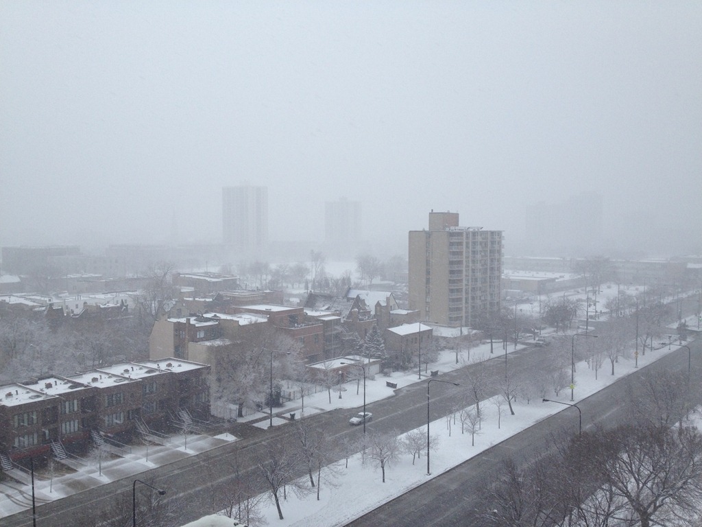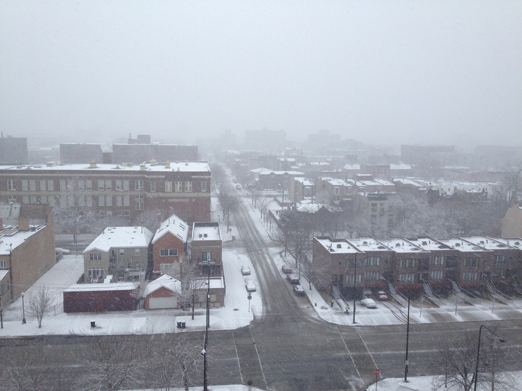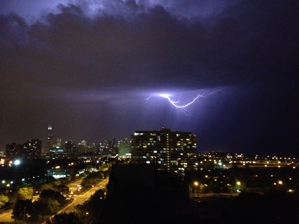 第二年的时候,我就搬到了现在住的地方。住在客厅里面虽然有很多弊端,但是最显著的好处就是有一个独占的阳台。这个小区有四幢楼,但是只有在这幢楼的这个方向的角落的阳台上才能同时看到密西根湖、 downtown 和西边的内陆地区。而且我住在12楼,视野足够开阔。这样的风景非常难得。