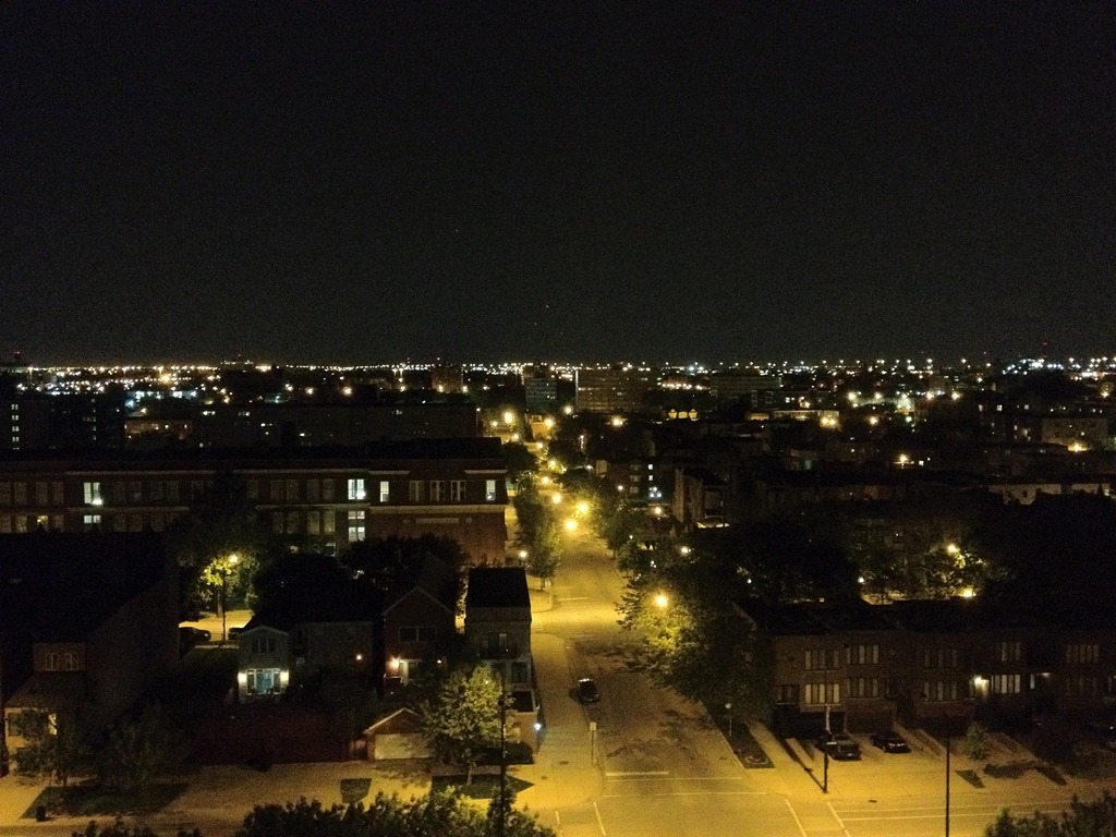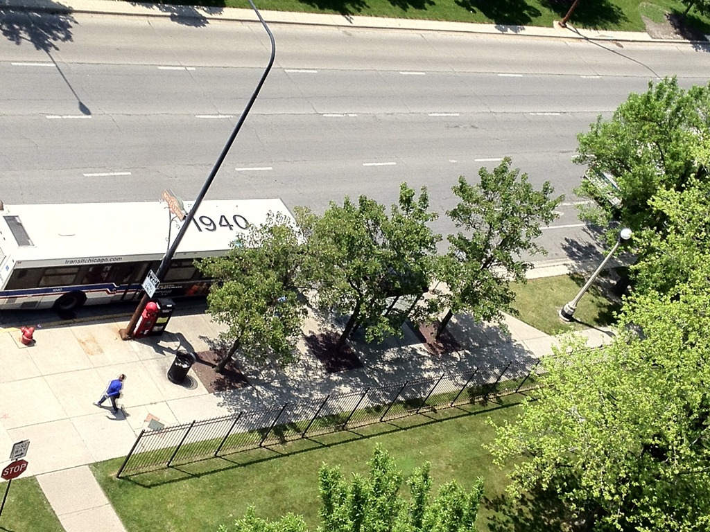 我租的公寓是芝加哥黑人区的廉价公寓,但是阳台外面有一大片非常难得的景色。每天站在阳台上,无论朝哪个方向看,都感觉赏心悦目。
