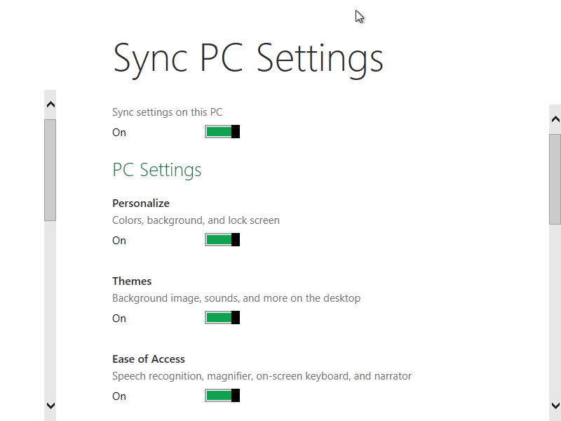 值得一提的是这个 Sync PC Settings 。理想状态下,我可以找到任何一台运行 Windows 8 的 PC ,然后用我的 Windows Live ID 登录,然后我的所有设置都会加载。