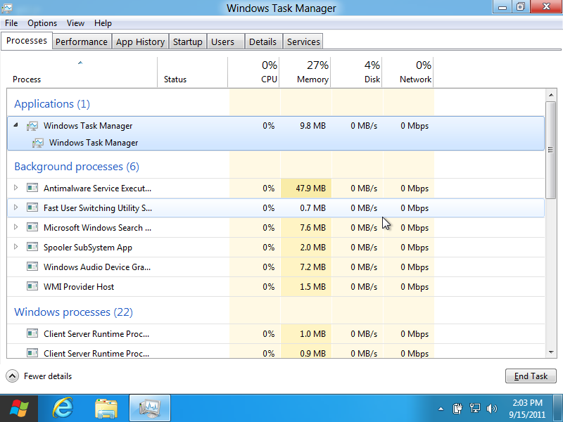 传说中的新版任务管理器。不仅实用而且一目了然。